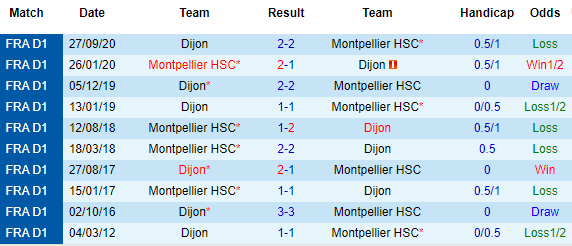 + Lịch sử đối đầu Montpellier vs Dijon