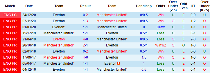+ Soi tỷ lệ kèo tài xỉu: Trong vòng 9 trận đối đầu gần đây giữa hai đội trên sân Old Trafford, 6 trận khép lại với tối đa 2 pha lập công. Everton có 9 trên 12 trận gần đây tại giải Ngoại hạng Anh kết thúc với ít hơn 2,5 bàn thắng. Chọn: Xỉu.