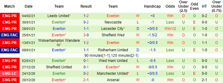 + Thống kê 10 trận gần nhất của Everton