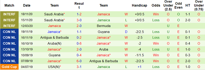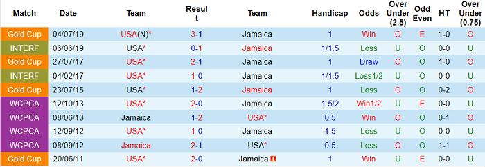Phong độ và thống kê đối đầu Mỹ - Jamaica