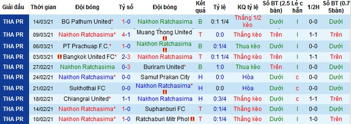 + Thống kê 10 trận gần nhất của Nakhon Ratchasima