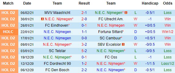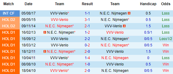 + Lịch sử đối đầu NEC Nijmegen vs VVV Venlo
