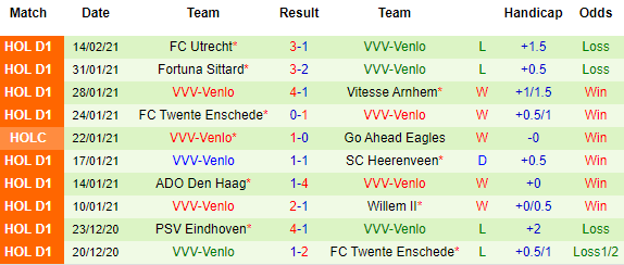 + Thống kê 10 trận gần nhất của VVV Venlo