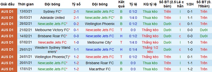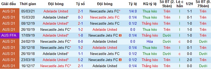 Ngay cả ở 3 lần đối đầu gần nhất khi Newcastle Jets được thi đấu trên sân nhà họ cũng không thể giành chiến thắng. Bởi vậy hoàn toàn có cơ sở để chọn cửa dưới ở trận đấu này, nhất là khi ở lượt đi cách đây 2 tuần Adelaide United đã từng giành chiến thắng với tỷ số 2-1.