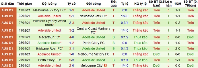 + Thống kê 10 trận gần nhất của Adelaide United