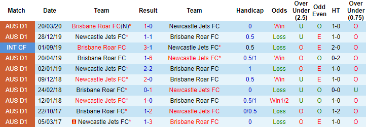 Tại giải VĐQG Australia, Brisbane Roar xứng đáng được coi là kỳ phùng địch thủ của Newcastle Jets. Trong vòng 50 trận đối đầu Brisbane Roar trước đây, Newcastle Jets thắng 19, hòa 14, thua 17 trận. 2 lần gần nhất làm khách trên sân của Newcastle Jets, Brisbane Roar đều ra về với 1 điểm.