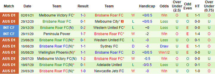 + Thống kê 10 trận gần nhất của Brisbane Roar