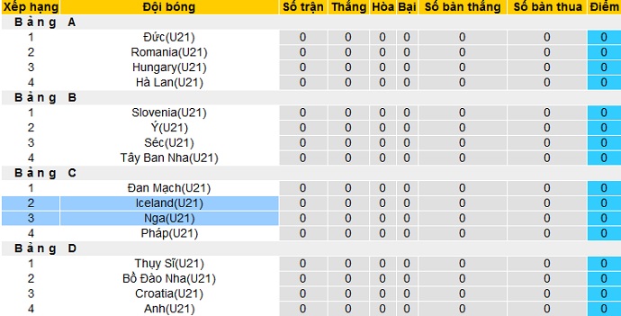 Bảng xếp hạng EURO U21