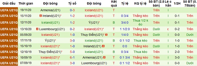 + Thống kê 10 trận gần nhất của Iceland U21