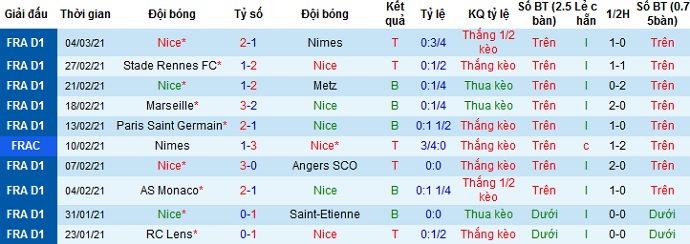 + Thống kê 10 trận gần nhất của Nice