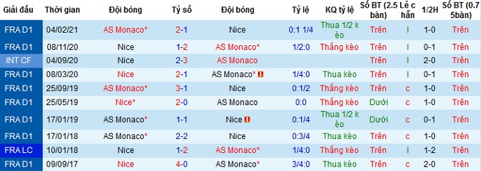 + Lịch sử đối đầu Nice vs AS Monaco