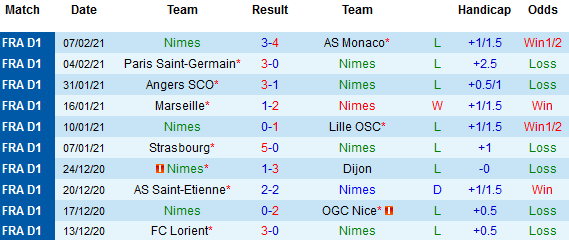 + Thống kê 10 trận gần nhất của Nimes