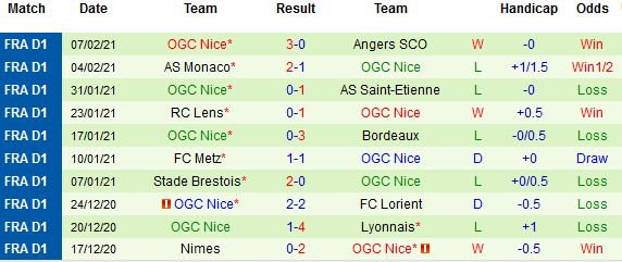 + Thống kê 10 trận gần nhất của Nice