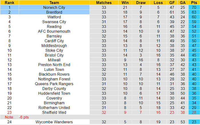 Trong khi đó, Brentford thời gian gần đây không có được thành tích tốt trên sân khách. Họ toàn thua 2 trận sân khách vừa qua thuộc khuôn khổ Championship. Mùa này, Brentford mới thua 6 trận thì 4/6 thất bại đó diễn ra trên sân của đối phương.