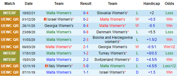 + Thống kê 10 trận gần nhất của Nữ Malta