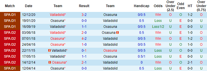 Phong độ và thống kê đối đầu Osasuna vs Valladolid