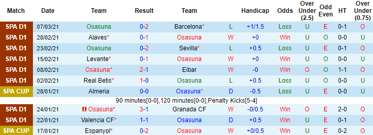 + Thống kê 10 trận gần nhất của Osasuna