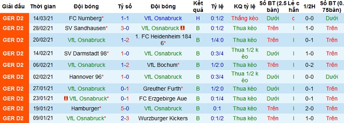 + Thống kê 10 trận gần nhất của Osnabrück