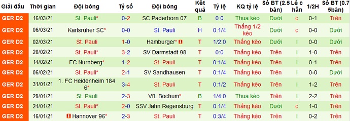 + Thống kê 10 trận gần nhất của St. Pauli