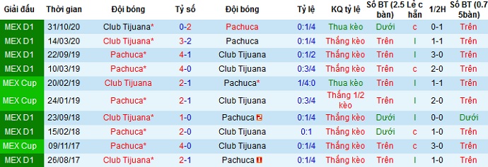 + Lịch sử đối đầu Pachuca vs Club Tijuana