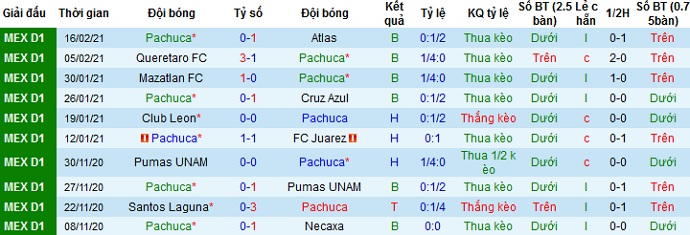 Đã 8 trận gần nhất Pachuca không biết đến mùi chiến thắng với 3 trận hòa và 5 trận thua. Đáng nói là hiện đội bóng đang để thua trong cả 4 trận gần nhất. Ngay cả trên sân nhà thành tích của Pachuca cũng rất tệ khi mới có được 1 trận hòa để thua 4 trận còn lại trong 5 trận gần nhất, tính cả các trận lượt đi.