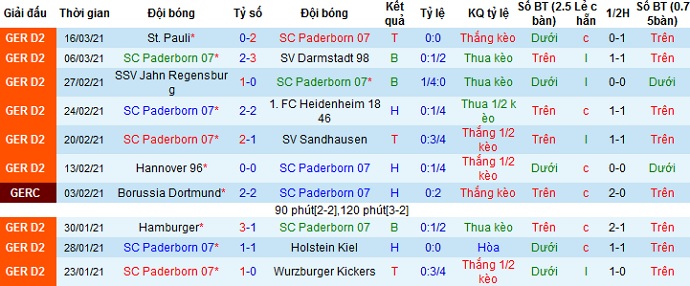 + Thống kê 10 trận gần nhất của Paderborn