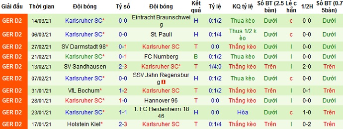 + Thống kê 10 trận gần nhất của Karlsruher