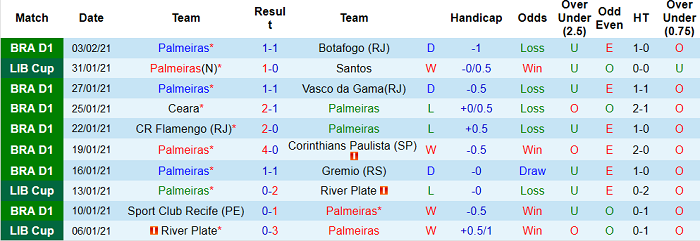 Phong độ và lịch sử đối đầu Palmeiras - Tires UANL