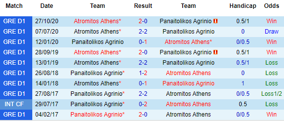 + Lịch sử đối đầu Panetolikos vs Atromitos
