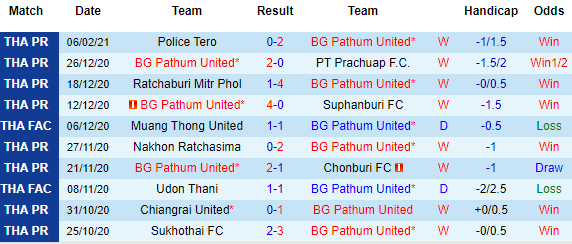 + Thống kê 10 trận gần nhất của Pathum United