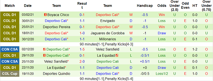 - Thống kê 10 trận gần nhất của Deportivo Cali