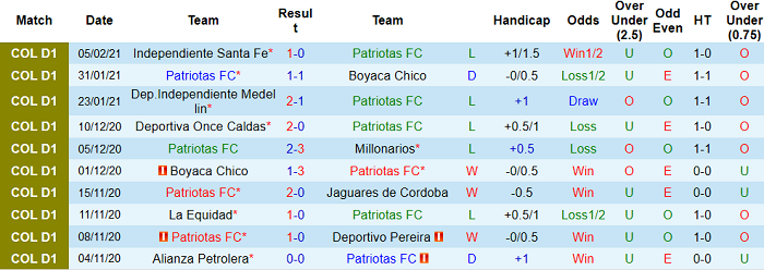 Patriotas và Deportivo Cali sở hữu thành tích tương đối khác nhau kể từ khi giải VĐQG Colombia mùa 2021 khởi tranh. Patriotas chỉ thu về 1 điểm từ 3 trận đã đấu và thuộc nhóm 3 đội có thành tích tốt nhất.