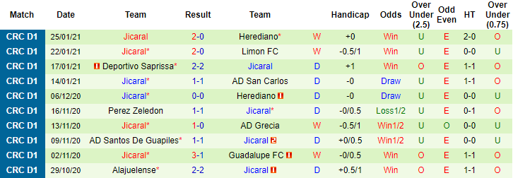 + Thống kê 10 trận gần nhất của Jicaral Sercoba
