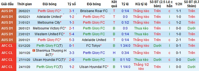 Trong mùa trước trong cả 2 lần đối đầu Perth Glory đều giành chiến thắng. Bởi vậy nếu đội chủ nhà vẫn tiếp tục duy trì được phong độ như ở các trận vừa qua thì có lẽ chọn cửa trên là lựa chọn có cơ sở và hoàn toàn hợp lý.