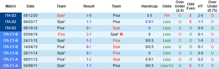 + Lịch sử đối đầu Pisa vs SPAL