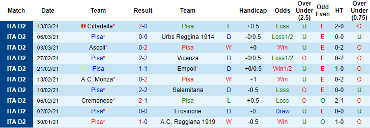 + Thống kê 10 trận gần nhất của Pisa