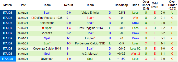 + Thống kê 10 trận gần nhất của SPAL