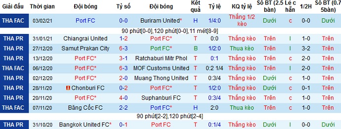 Trong 5 trận đấu gần đây Port FC có được 3 trận thắng, để thua 2 trận. Mới đây tại đấu trường FA Cup, Port FC đã phải dừng bước tại vòng 3 khi để thua trước Buriram United ở loạt sút luân lưu sau khi hai đội đã hòa nhau không bàn thắng trong hiệp chính. Nếu không tính trận thua kể trên, tại sân nhà thành tích của Port FC đang rất tốt khi toàn thắng ở cả 5 trận gần nhất tại đây.