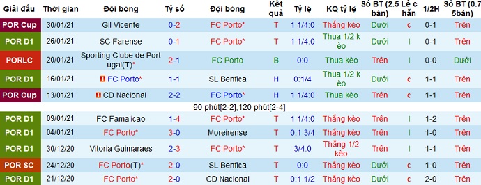 + Thống kê 10 trận gần nhất của Porto