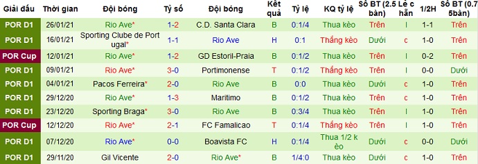 + Thống kê 10 trận gần nhất của Rio Ave