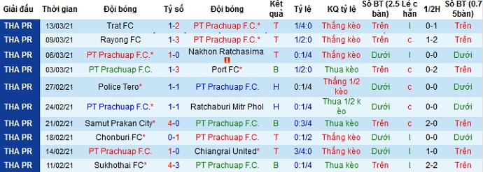 + Thống kê 10 trận gần nhất của Prachuap FC