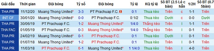 + Lịch sử đối đầu Prachuap FC vs Muang Thong United