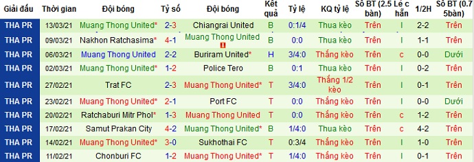 Cũng có thể đó là lý do khiến cho Muang Thong United chỉ có được 1 trận thắng, 1 trận hòa và để thua 3 trận ở 5 trận gần đây. Tuy nhiên trên sân khách ở 5 lần du đấu gần nhất Muang Thong United cũng có được 3 trận thắng và để thua 2 trận.