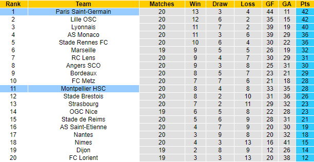 8 trận xa nhà vừa qua trong khuôn khổ Ligue 1, Montpellier bất bại 7 lần với 4 chiến thắng và 3 trận hòa. Trận đấu sắp tới Montpellier còn được đón tin vui về mặt lực lượng. Theo đó, đội khách sẽ có đầy đủ những cầu thủ quan trọng nhất để ra sân đối đầu PSG vào rạng sáng 23/1.