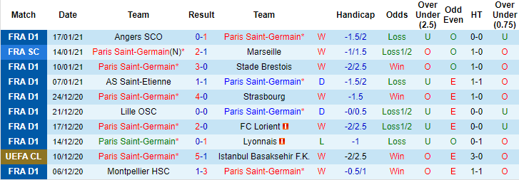 + Thống kê 10 trận gần nhất của PSG