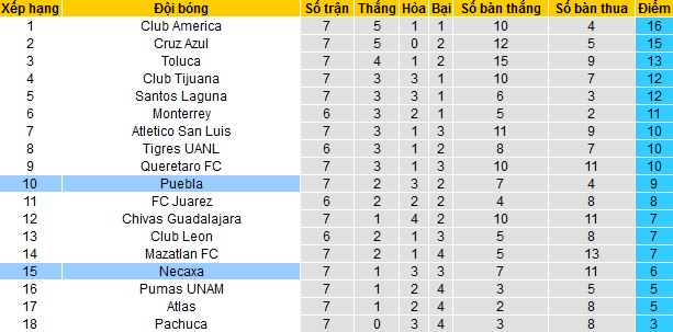 + Lịch sử đối đầu Puebla vs Necaxa