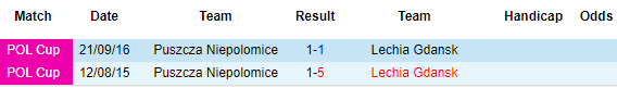 + Lịch sử đối đầu Puszcza Niepolomice vs Lechia Gdansk
