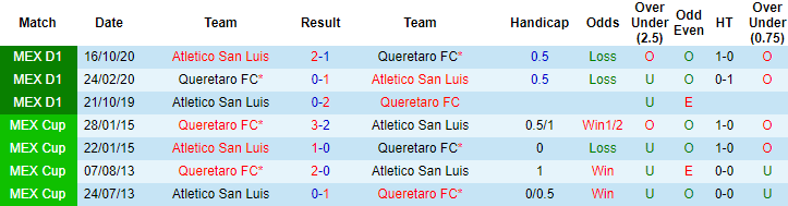 + Lịch sử đối đầu Queretaro vs San Luis