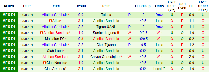 San Luis toàn thắng cả 2 trận đối đầu Queretaro gần đây. 5 vòng đấu vừa qua tại giải VĐQG Mexico, Queretaro bất thắng với 3 thất bại và 2 trận hòa. Lực lượng sứt mẻ, 4 trụ cột chấn thương, Queretaro khó hứa hẹn chơi khởi sắc dù có lợi thế sân nhà. Bên kia chiến tuyến, San Luis giai đoạn gần đây thi đấu khởi sắc thấy rõ. Trong vòng 6 trận gần đây tại giải VĐQG Mexico, San Luis bất bại 5 lần với 3 trận hòa và 2 chiến thắng.