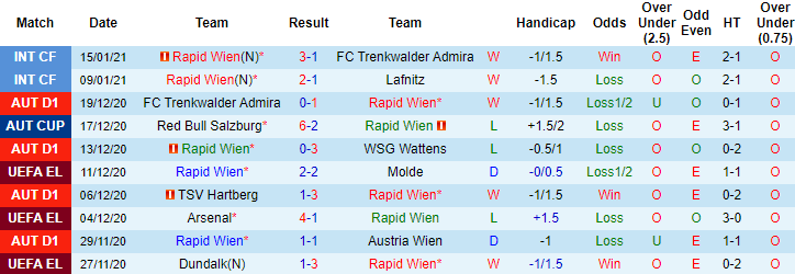 + Thống kê 10 trận gần nhất của Rapid Wien